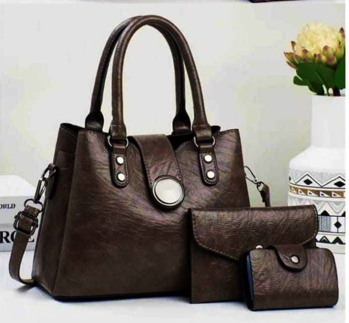 ومصنوعة من خامة جلدية عالية الجودة، و بتيجي بإكسسوارات مستوردة و اللي بيخلي الشنطة دي مميزة أكتر، إنها بتيجي بــ 3قطع مختلفة ، بها شنطة يد، و بروتفيه و محفظة  وبتيجي بجيوب متعددة ومساحات تخزين كبيرة، عشان تنظمي حاجاتك بشكل منظم و توفري علي نفسك الوق و الجهد. وبما إن الشنطة دي بتتميز بالتصميم العصري والجودة العالية، فهي هتكون الخيار الأمثل لكل ست بتحب تكون على الموضة والأناقة، وبتحتاج شنطة عملية و شيك و مريحة في نفس الوقت.